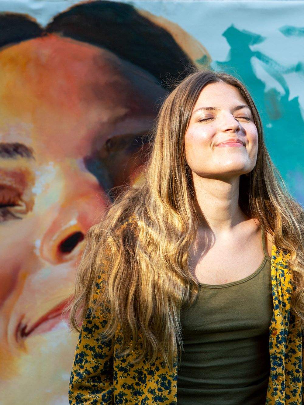 I am continually entranced by the healing aspects of art and how it can be therapeutic on both a personal and societal level. As a chronically ill artist, my practice has been a crucial part of my personal healing. My work helps me process and understand my experiences. Healing comes from the continuous practice of letting go, exploration, and embracing uncertainty. Painting acts as a release, helps me understand myself, and brings me closer to acceptance and peace. On a larger scale, I love to create public art because I think it can help us heal collectively. I believe public art is beautiful, accessible, and can be used as social action. Creativity is a powerful form of resistance and a beautiful tool to build community.Â
